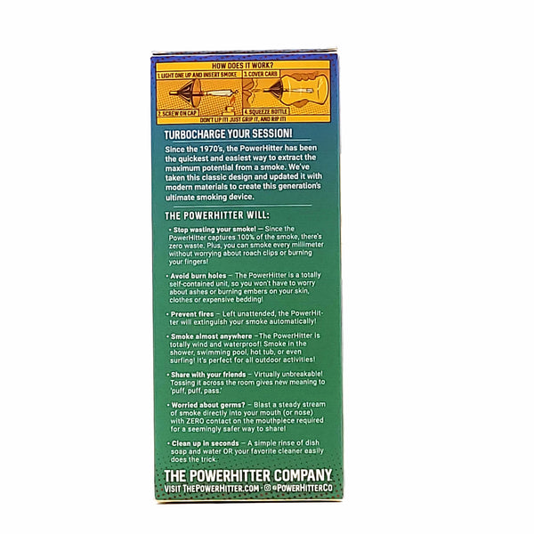 Since the ‘70’s, The PowerHitter™ has been the quickest and easiest way to extract the maximum potential from a smoke. Old timers will immediately recognize this from their collection fondly as it was simply the funnest way to enjoy rolled smokes.